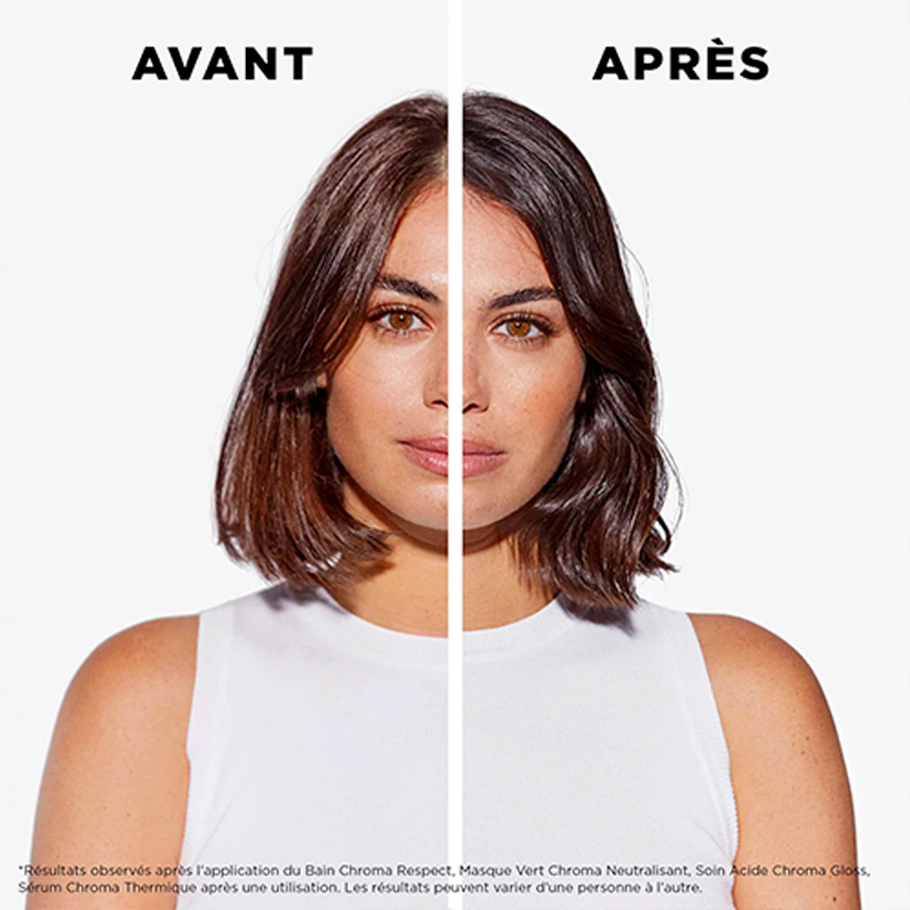 – Continuer la routine avec le Fondant Chroma Absolu, le Masque ou le Soin Acide Chroma Gloss.