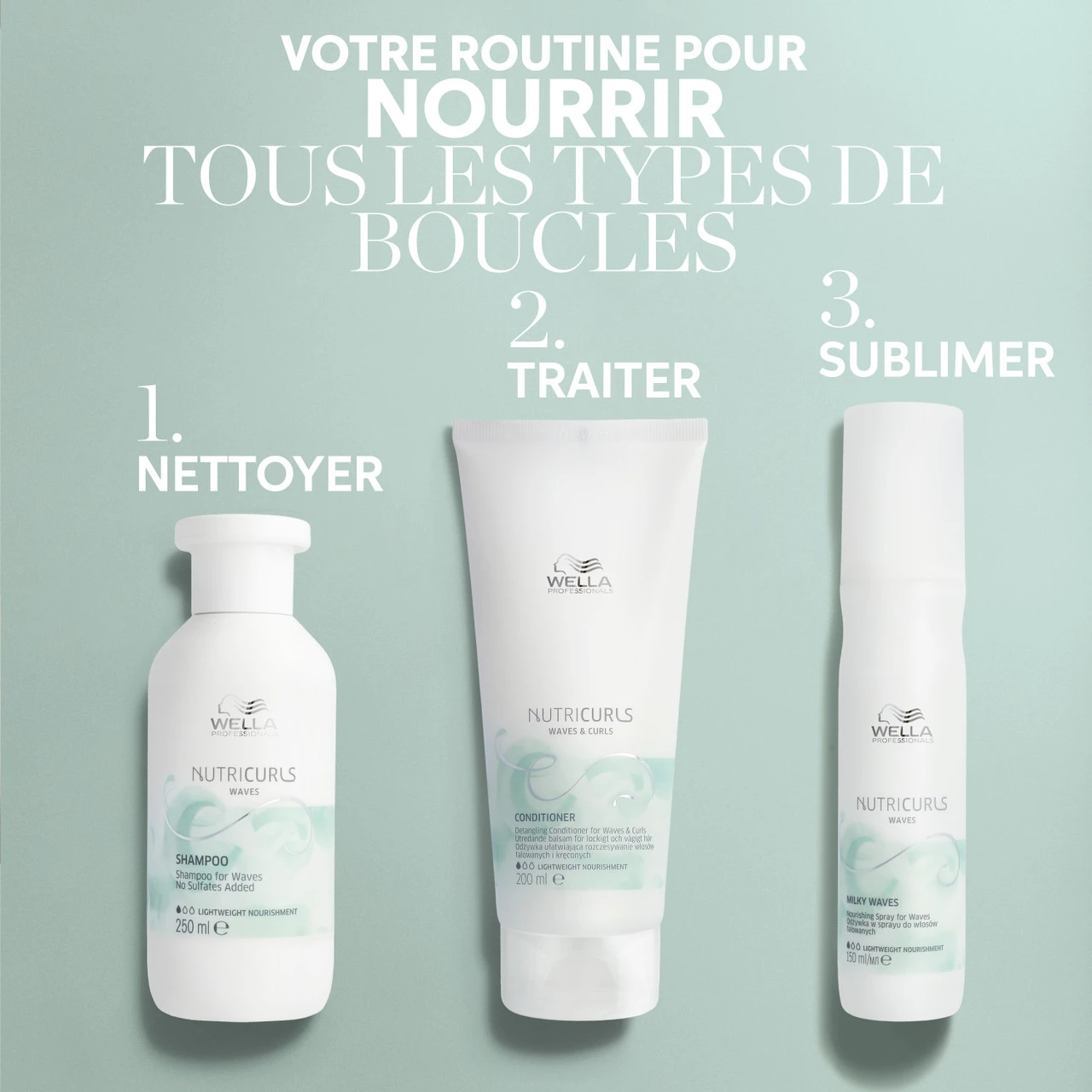 Nutricurls est la nouvelle gamme de Wella Professionals spécifiquement conçue pour répondre aux besoins des cheveux bouclés et ondulés. Les cheveux bouclés de par leur nature ont un grand besoin d’hydratation afin de préserver leur beauté naturelle.
